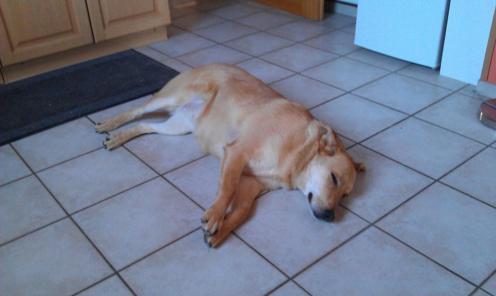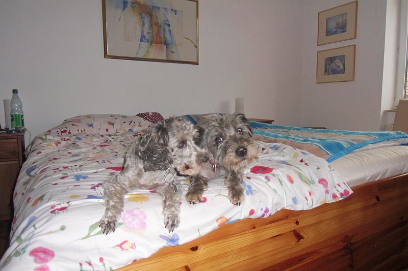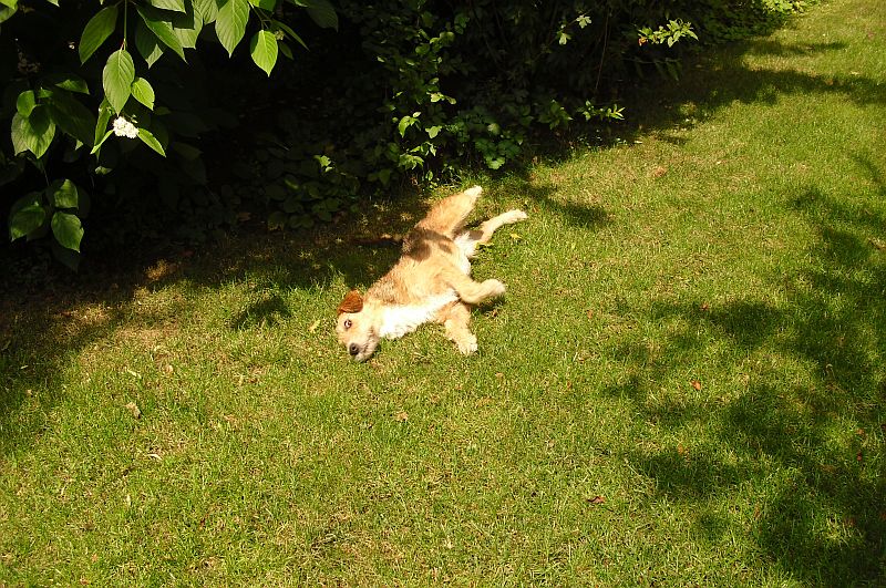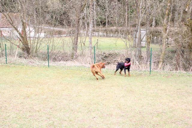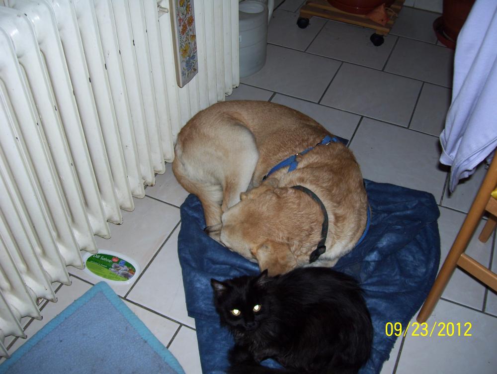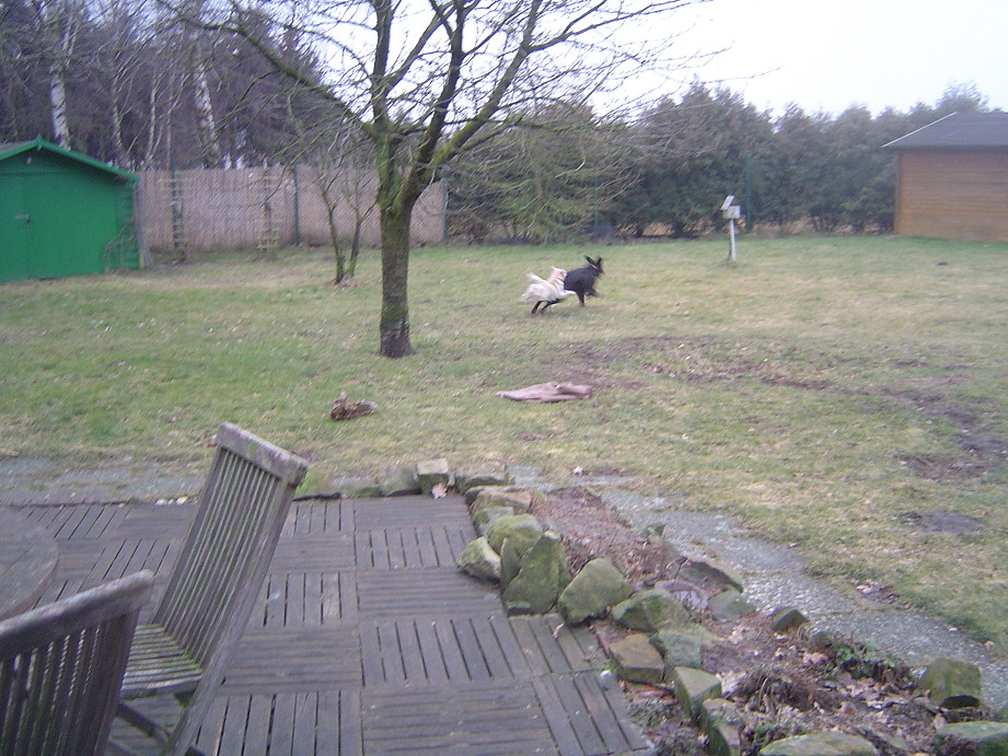 Coco tobe wie wild mit ihrem Kumpel um die Ecken - näheres siehe Gästebuch :-) Abends sind dann alle, inkl. der Dosis, müde ins Bett gefallen.
