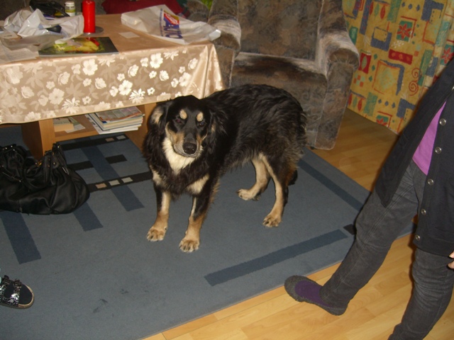 Auch Bonzo durfte bei Blokis neuem Plätzchen unterkommen und läuft sogar im Stall bei den Pferden mit auf und ab! Er wird heute schon dem Tierarzt vorgestellt, wir hoffen das Beste