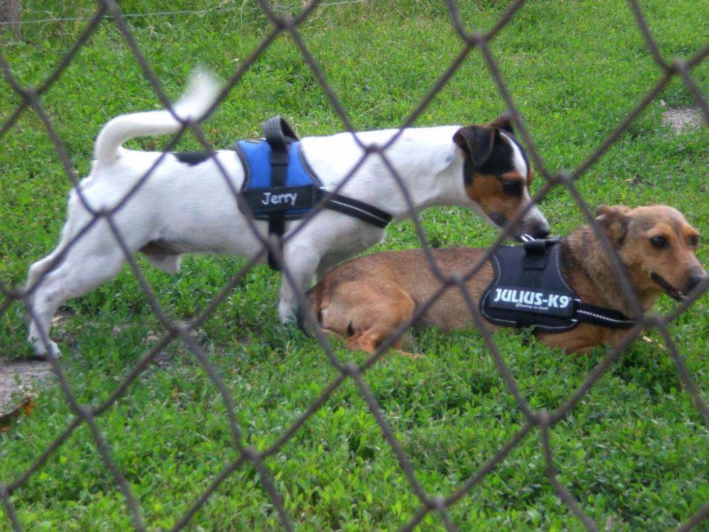 Jerry darf nun für immer bei seinem Pflegefrauchen bleiben, dort hat er viel Spaß mit einem Junghund aus Rumänien!