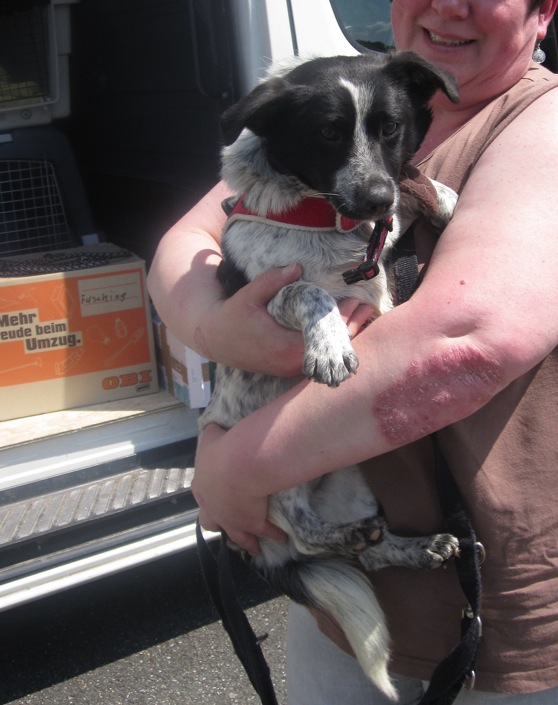 Merle durfte nach Deutschland umziehen - sie wurde höchst persönlich von Ihrer neuen Familie in Ungarn abgeholt :-)