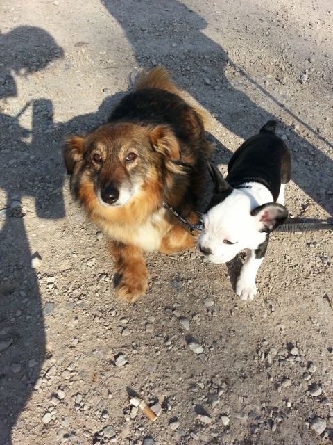 Die kleine Bogi hat es auch aus dem Tierheim geschafft. Sie zieht zu einem Hundekumpel und zeigt ihm erst mal was ein Wachhund ist {#emotions_dlg.teeth}