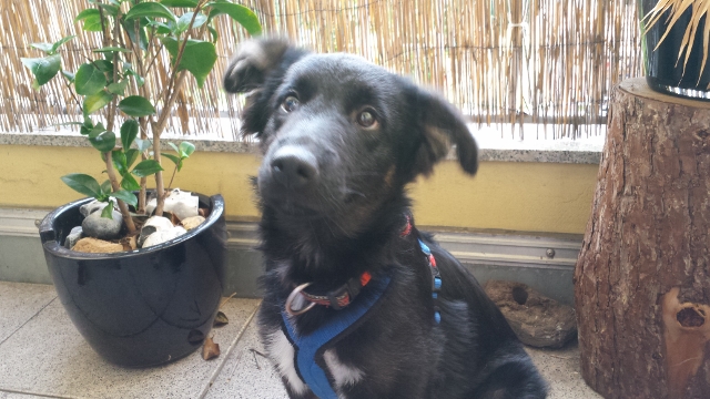 Die schöne schwarze Bogi. Sie konnte auch endlich ihre Koffer packen und auf reisen gehen. Viel Spaß in Deinem neuen Leben {#emotions_dlg.embarrassment}     Bogie ist noch ein bisschen schüchtern, hat in der ersten Woche aber schon einen Quantensprung hingelegt. Sie war schon beim Tierarzt, liebt das Kind und legt ihre Angst vor allem Neuen langsam ab. Auch ihren Hundetrainer hat sie schon kennengelernt und akzeptiert. Lächelnd
