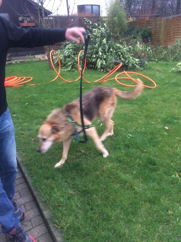 Januar 16: "...Alles in Ordnung. Er ist einfach toll. Lernt schnell. Ist nur verschmust. Kann ihn schon von der Leine lassen. ..."
