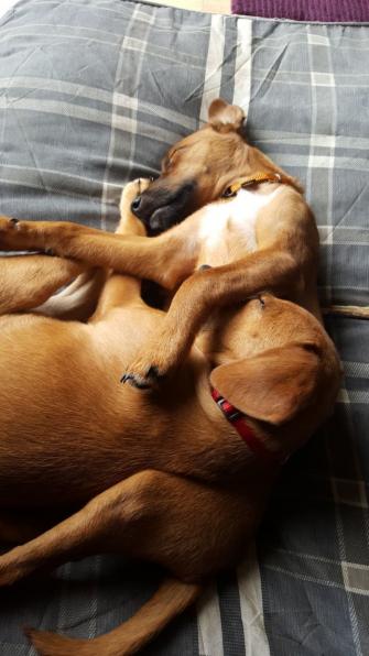 Ganz viel schmusen müssen wir noch, weil wir ganz viel nachholen müssen und ja auch noch ziemlich jung sind. Das finden unsere Menschen aber zum Glück total super.
