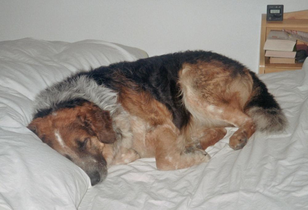 Sein Frauchen sagte uns, neben Kaninchen, Vögel und Katzen "hüten" liebt er seine Schlafeinheiten!