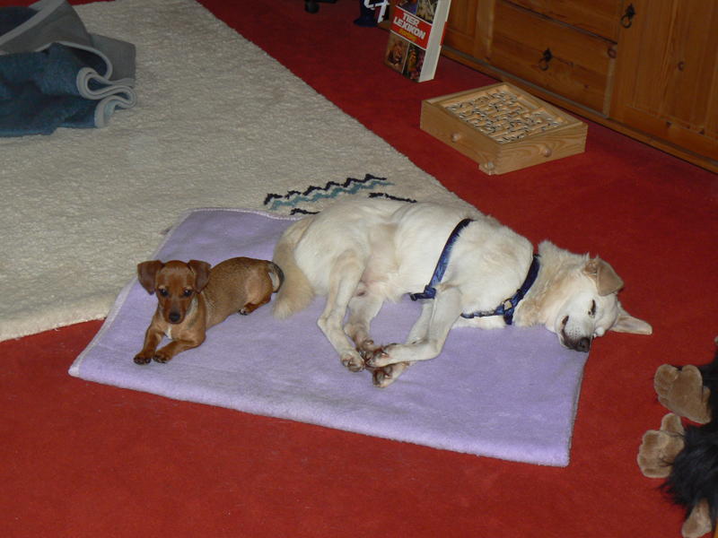 Unsere Startschwirigkeiten haben wir auch schon fast überwunden! :-( Pia hat sehr großen Futterneid gezeigt. Bis auf ein paar Bisswunden und zerrissenen Kleidungsstücken haben wir es überlebt.
